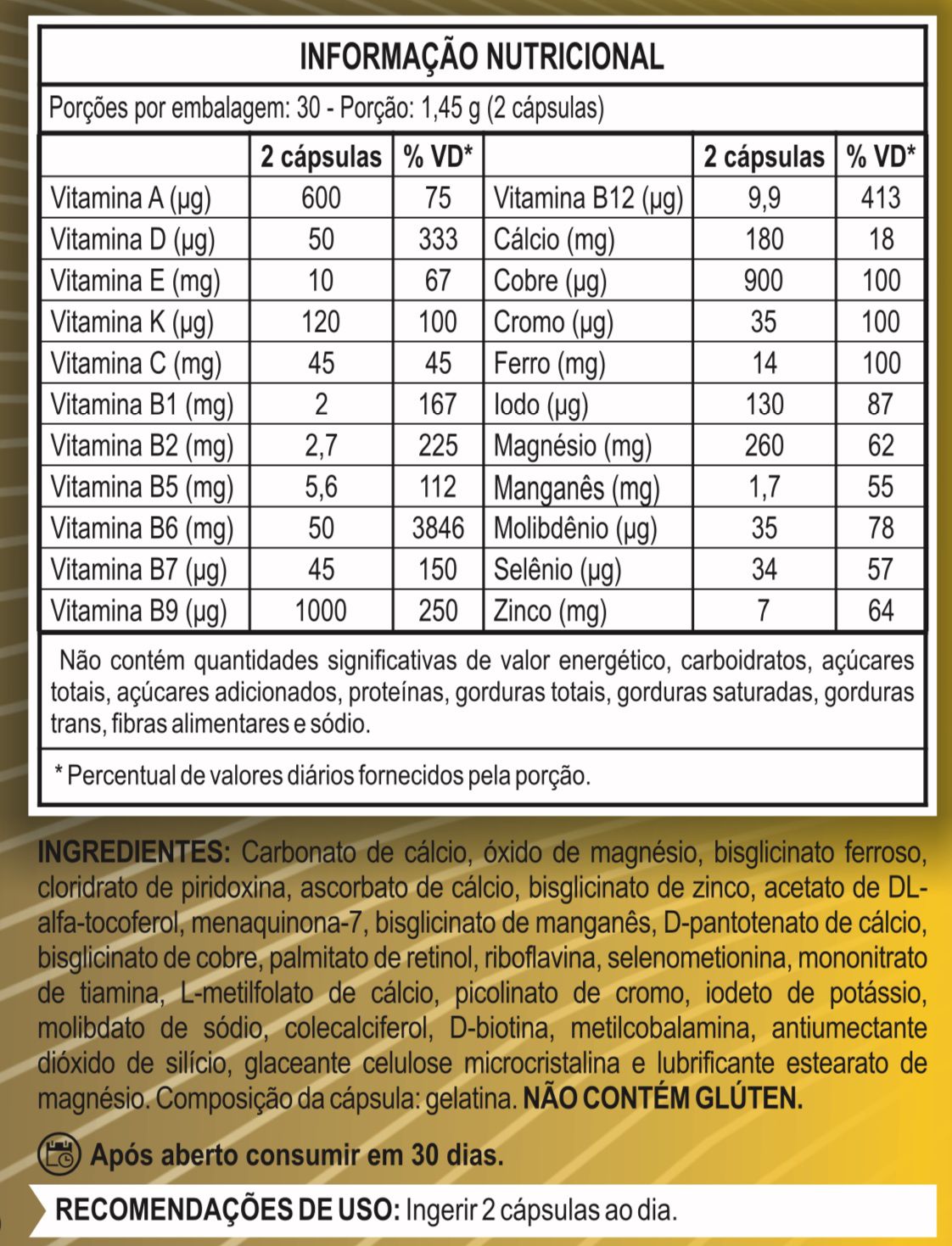 Um mix de vitaminas e minerais que complementa a nutrição, fortalece a imunidade e auxilia no bom funcionamento do metabolismo. Ideal para quem precisa repor nutrientes ou busca uma rotina mais saudável.